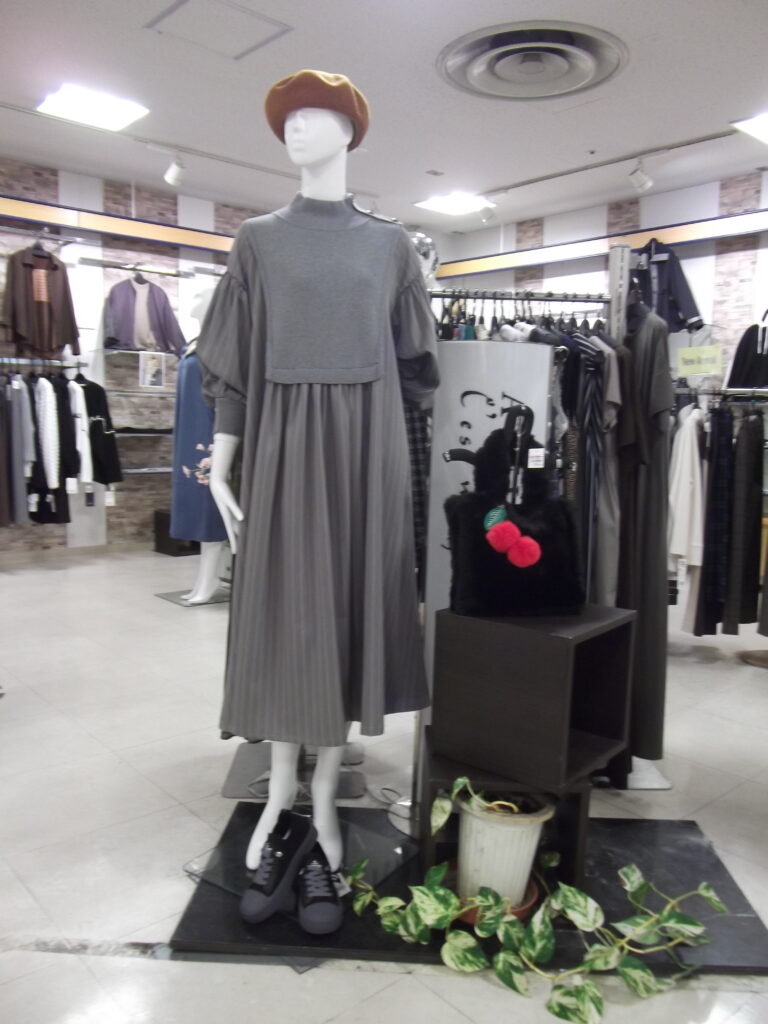 ワンピース大好き!大人女子のオススメ!ボリューミーな袖とニット配色がお洒落。