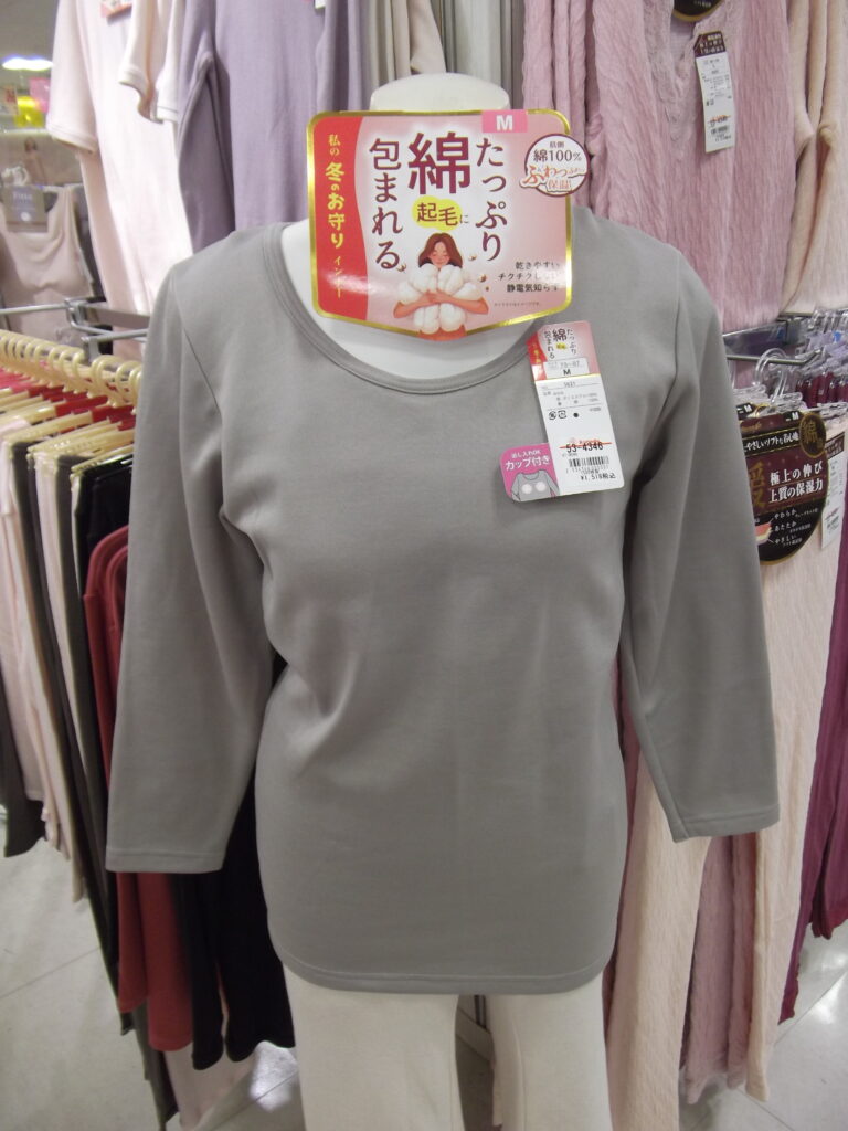 お肌にやさしい着心地の綿混素材で暖かい♪乾燥しがちなこれからの季節に◎ 2025年11月1日 最終更新日時 : 2025年10月29日 pop お肌にやさしい着心地の綿混素材で暖かい♪乾燥しがちなこれからの季節に◎ 秋冬インナー入荷してます! カットオフ素材だからアウターに響きにくい チクチクしなくて静電気知らず☆肌側100% カップ付き M~LL ¥1,518(税込)