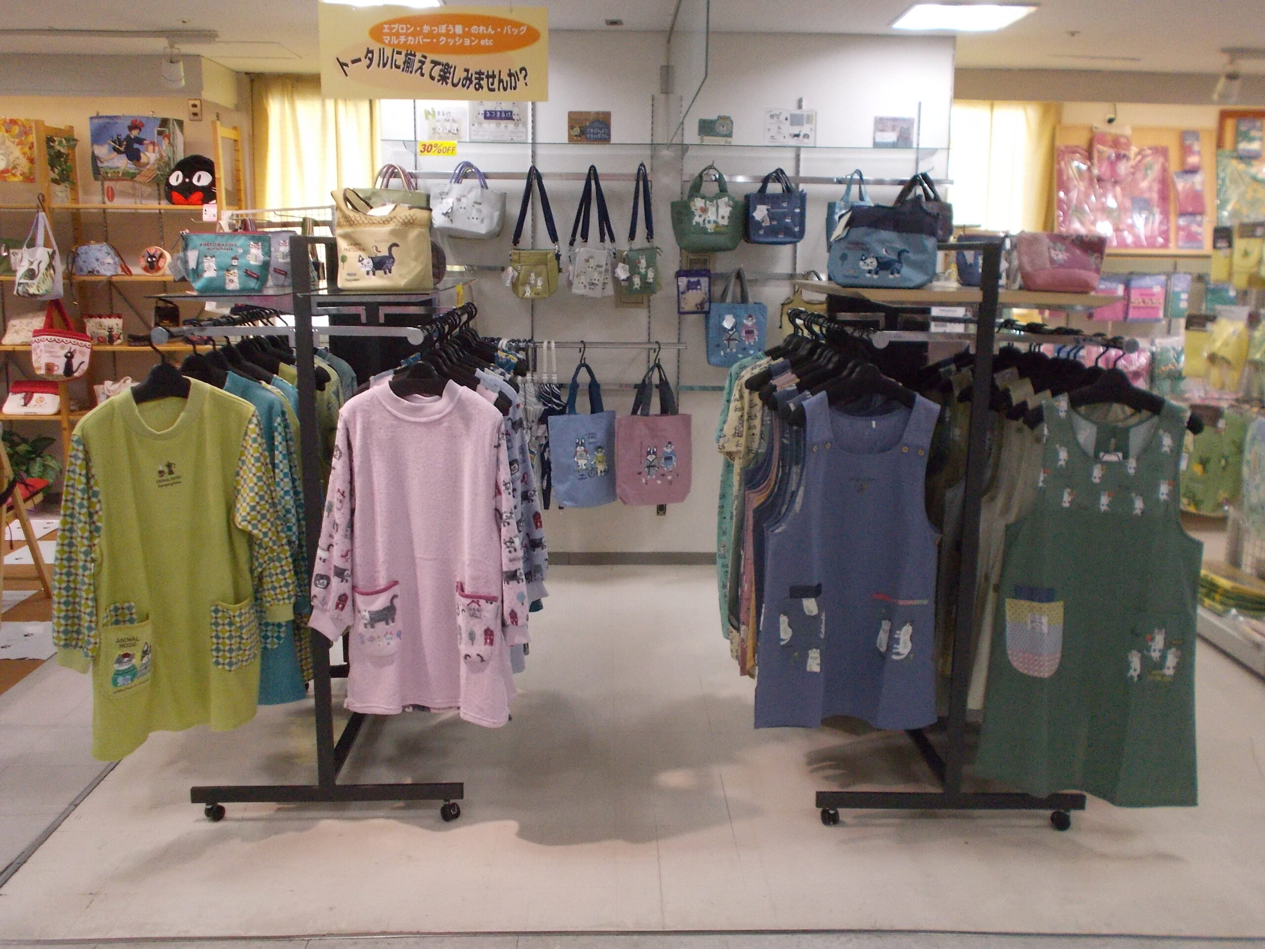 ネコまるけ、ねこせがわさんetc… エプロン、カッポウ、バッグなど30%~50%off