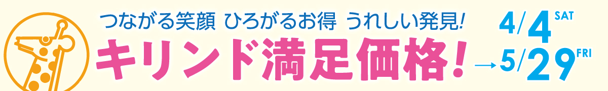 キリンド4月イベント 2026年4月3日 最終更新日時 : 2026年3月31日 pop つながる笑顔 ひろがるお得 うれしい発見!キリンド満足価格! 4/4~5/29開催! ↓今月のPICK UP!!↓ 今月の売出しイベント