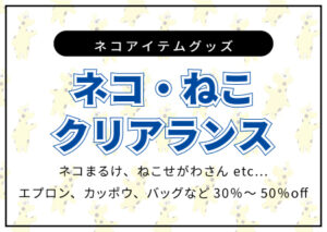 ネコまるけ、ねこせがわさんetc… エプロン、カッポウ、バッグなど30%~50%off ネコ・ねこクリアランス 暖か素材のプルオーバーカッポウ、エプロン 人気のネコまるけのカワイイプリント柄で素材もモケモケサンゴマイヤー […]