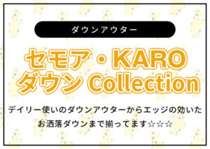 デイリー使いのダウンアウターからエッジの効いたお洒落ダウンまで揃ってます☆☆☆ セモア・KARO ダウンcollection カロ ニット配色ダウンJKコーデ ・ニット配色ダウンJK(カロ) 38サイズ ¥25,080・ […]