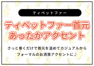 さっと巻くだけで首元を温めてカジュアルからフォーマルのお洒落アクセントに♪ ティペットファーで首元あったかアクセント ネコ型ファー☆パールやニット配色ファー☆ ティペットファー各種 本体ポリエステル100% 各¥1,10 […]